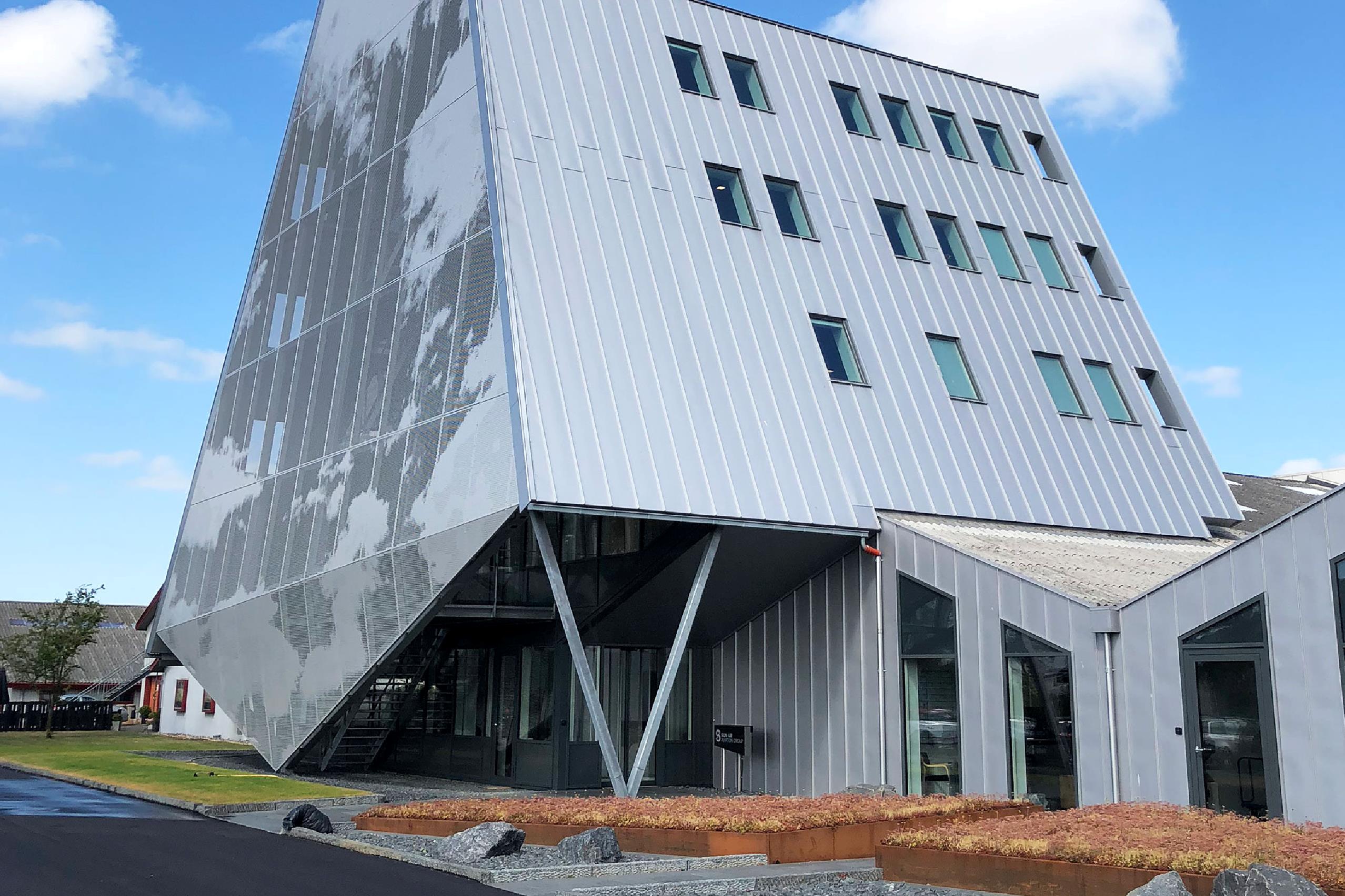 Byggeriet udføres med transparente facade beklædt med perforerede aluminiumsplader. Det signalerer et hovedkontor med åbenhed og inviterer kunder og medarbejdere indenfor. Efter mørkets frembrud skaber perforeringerne et levende lysspil i facaden. I sommerhalvåret fungerer de som solafskærmning, mens de i vinterhalvåret, når solen står lavt på himlen, skaber et blændfrit lysindfald.