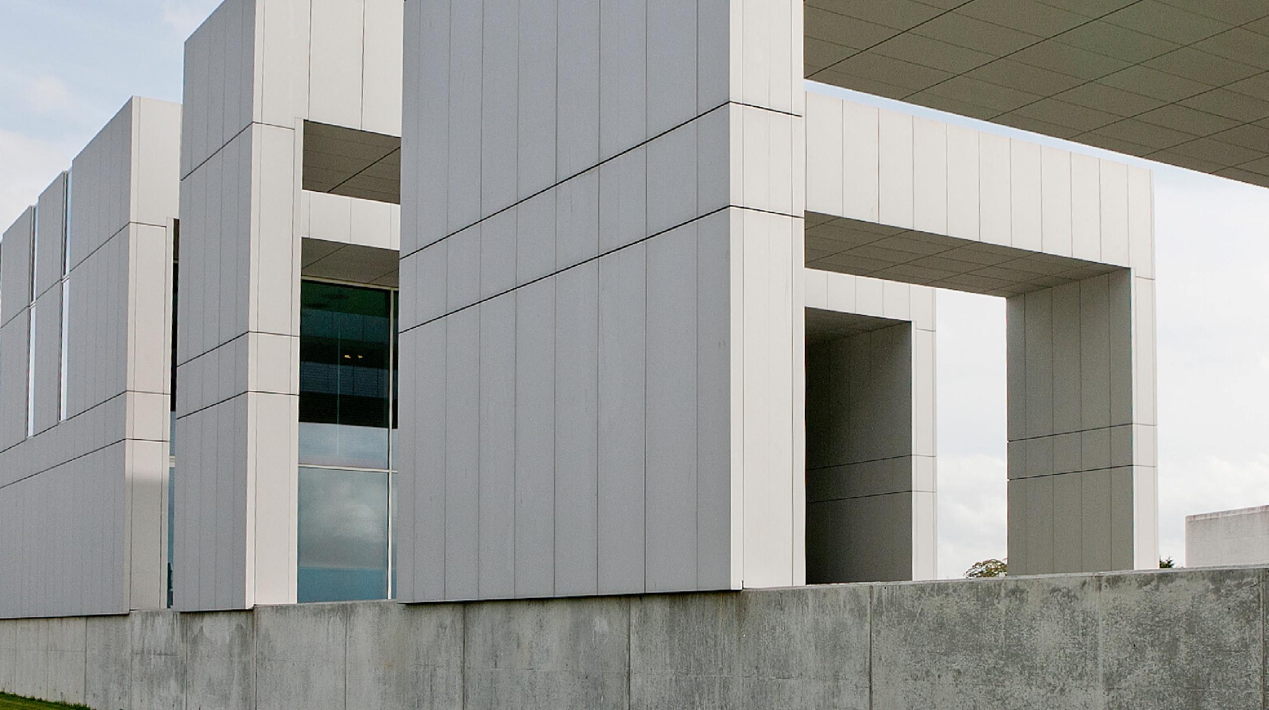 Kort fortalt, består bygningen af en åben stålramme med gavle af glas, der hviler på en sokkel af beton. I forlængelse af bygningsrammen står to fritstående rammer eller triumfbuer, der markerer indgangen til bygningen. Fortil er soklen omdannet til en trappe, der både skaber adgang til bygningen og danner auditoriets skrånende siddepladser