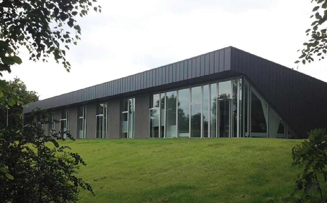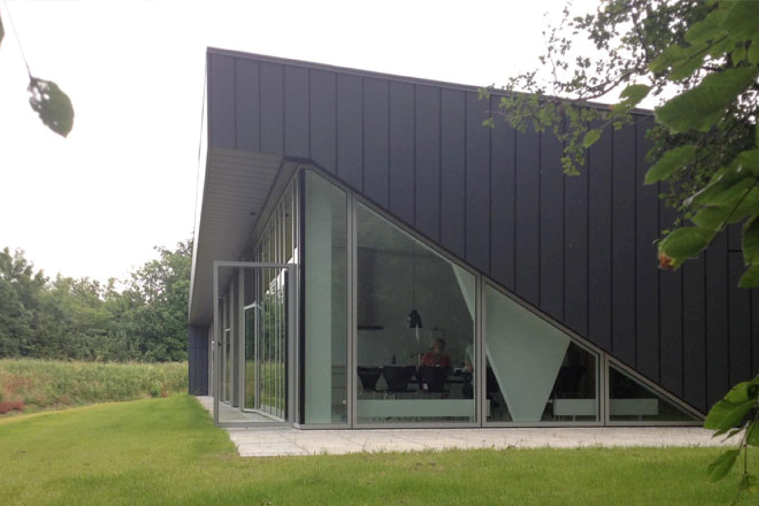Huset opføres i sandwich elementer kombineret med facadefelter udført af zink med stående false. Tagkonsturktionen udføres som ventileret paptag.